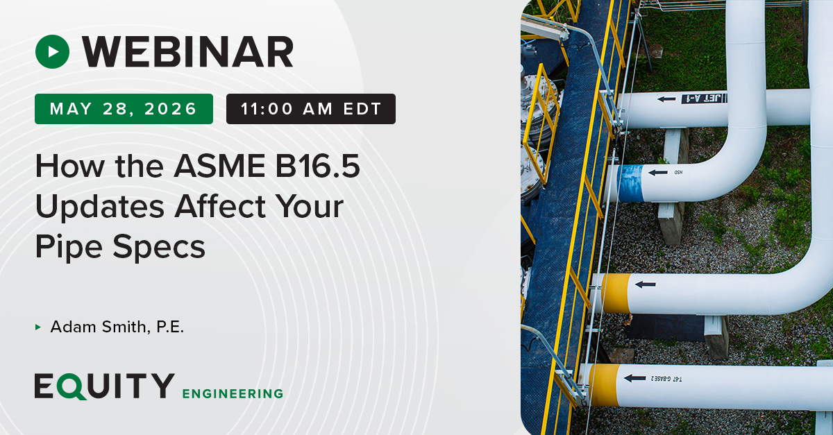In this webinar, you will learn about the recent changes to ASME B16.5 pressure ratings and the impact the changes will have on our company piping specifications. We will go […]